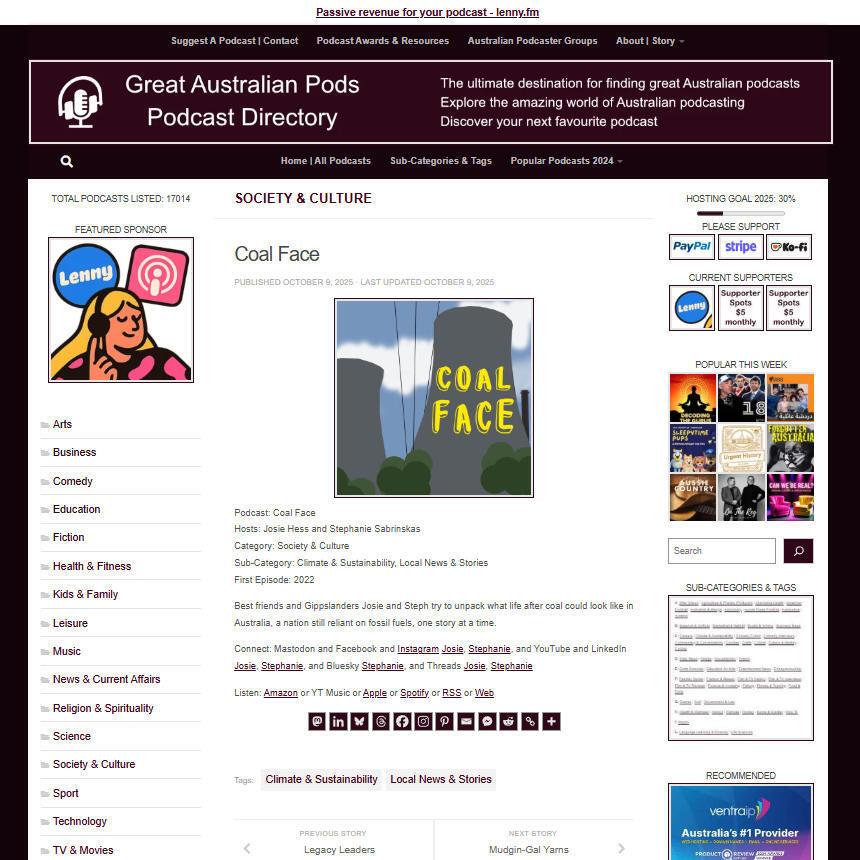 Great Australian Pods Podcast Directory: https://www.greataustralianpods.com/coal-face/
