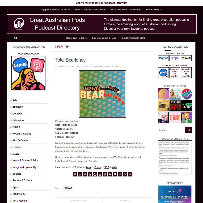 Great Australian Pods Podcast Directory: https://www.greataustralianpods.com/total-bearloney/