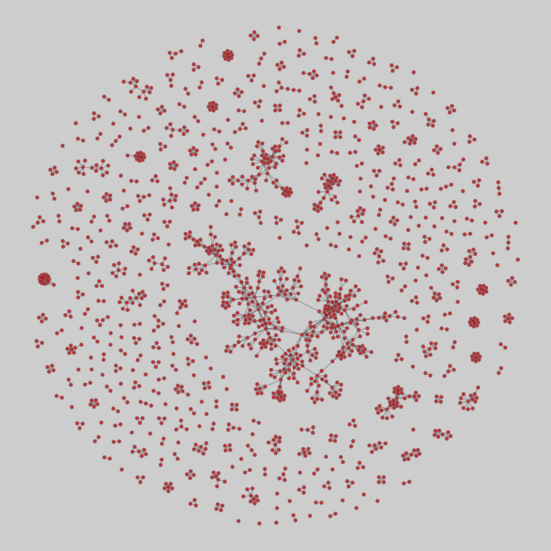 A coauthorship network among scientists working on network science, from 2006. This network is a one-mode projection from the bipartite graph of authors and their scientific publications.