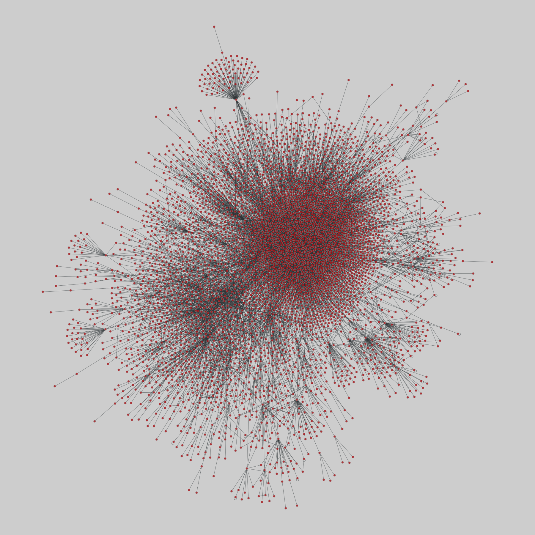 A symmetrized snapshot of the structure of the Internet at the level of Autonomous Systems (ASs), reconstructed from BGP tables posted by the University of Oregon Route Views Project. This snapshot was created on 22 July 2006.