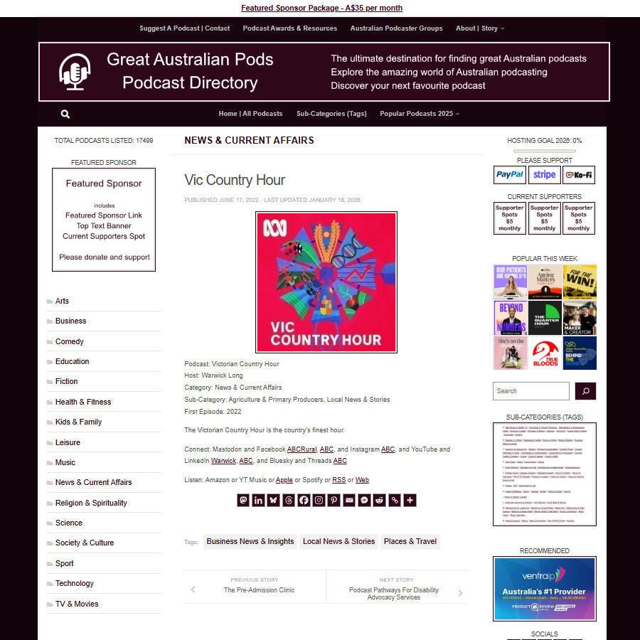 Great Australian Pods Podcast Directory: https://www.greataustralianpods.com/victorian-country-hour/