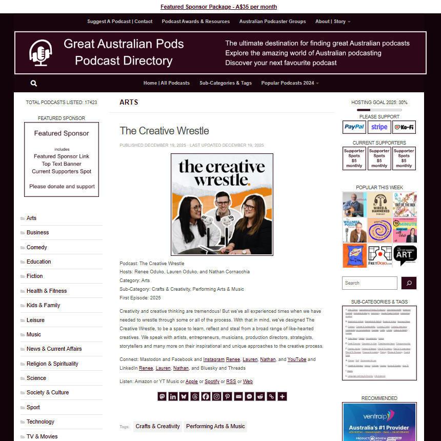 Great Australian Pods Podcast Directory: https://www.greataustralianpods.com/the-creative-wrestle/