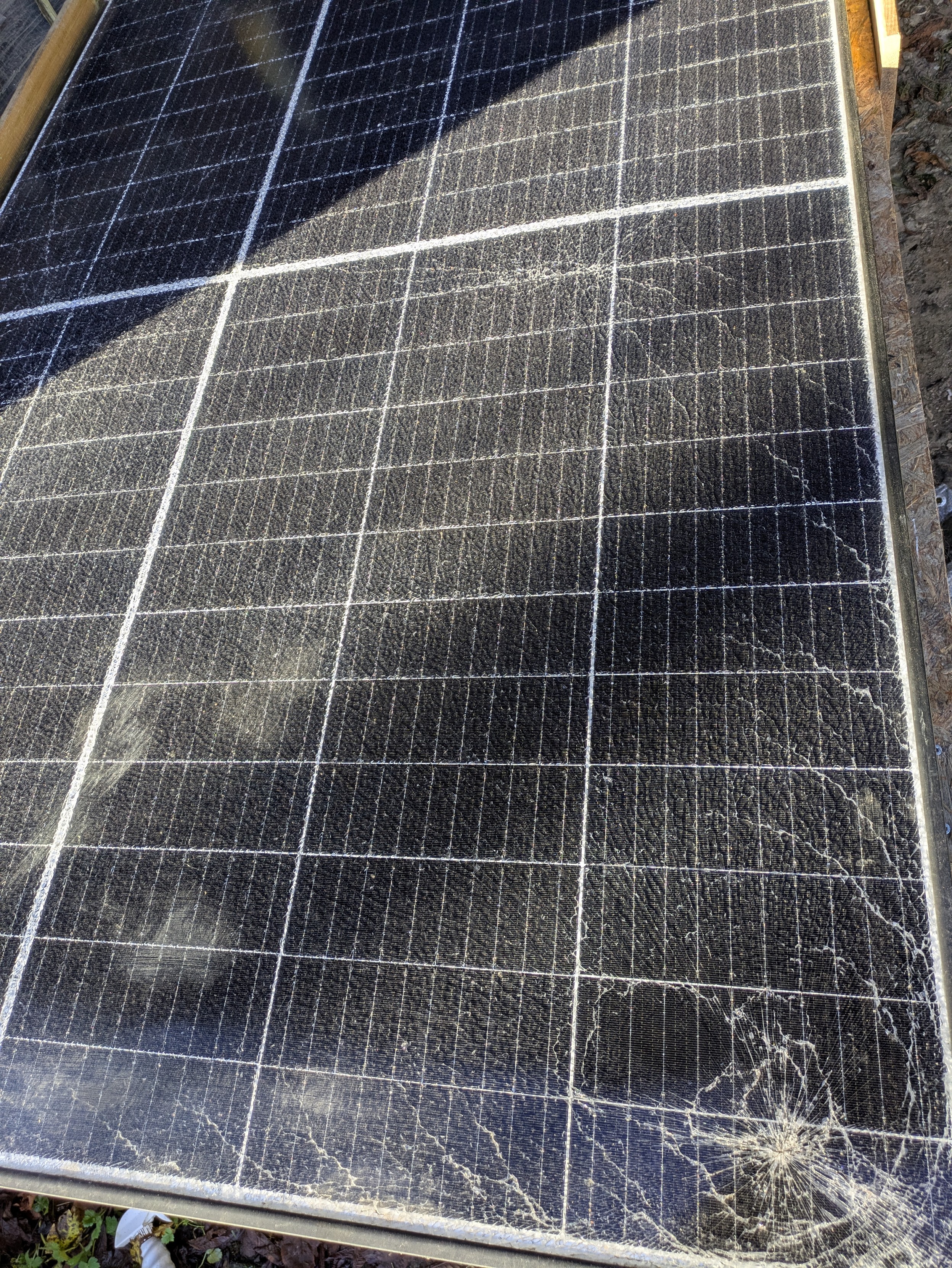 Finally getting around to trying to do something with the shattered solar panel I ended up with when the couriers failed twice to not smash part of my order. The PV layer under the tempered glass is still intact and functional, so my plan is to fill the impact point with CA glue, then coat the entire top with urethane to improve its weather resistance, and ultimately use it to directly power a PTC heating element in a shed. *Any* additional free heat in that building is a plus, and *any* ben…