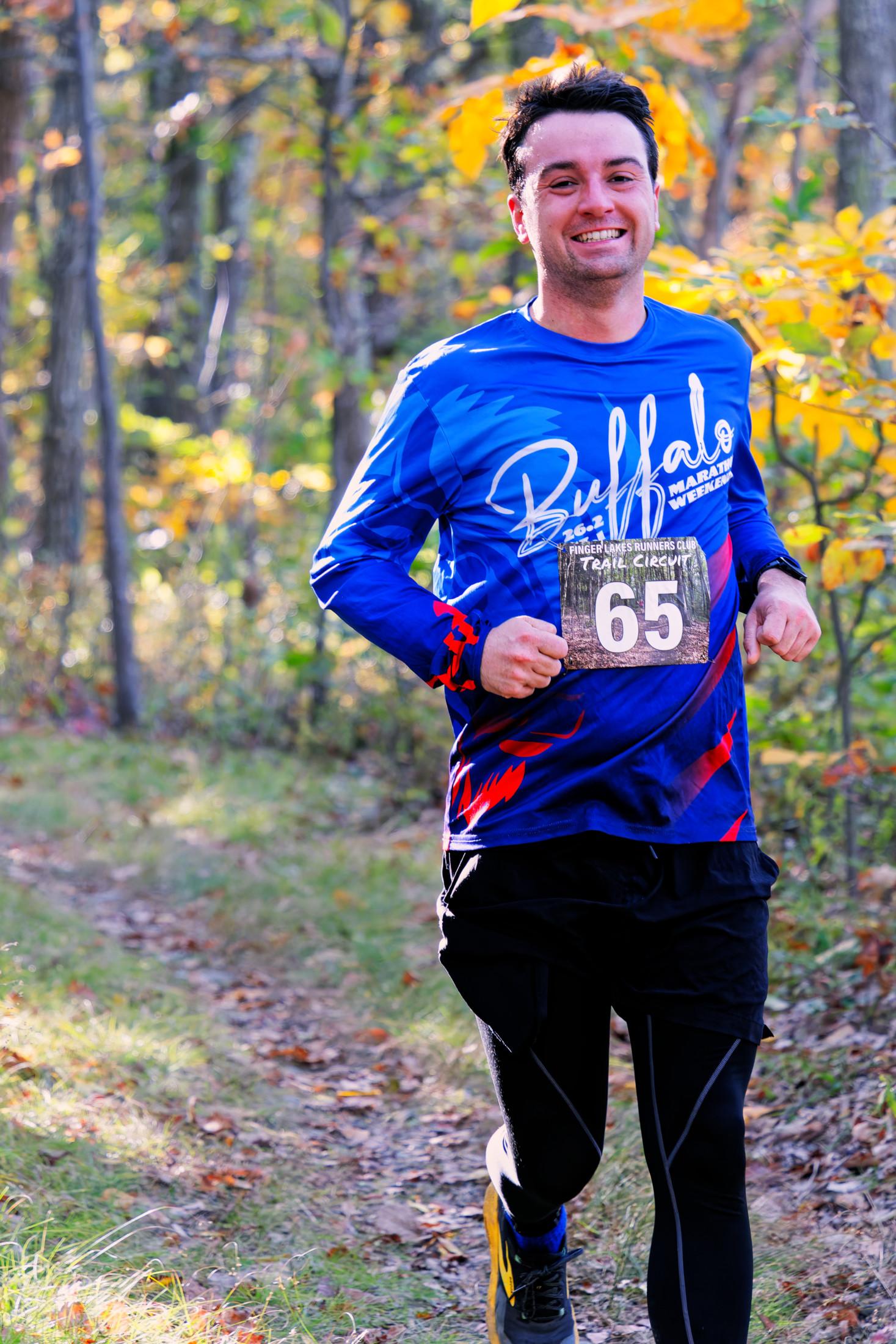 Another happy runner at the Pinnacles, the high point of the Danby State Forest which is one of those rare places in southern Tompkins County where you almost have a commanding view