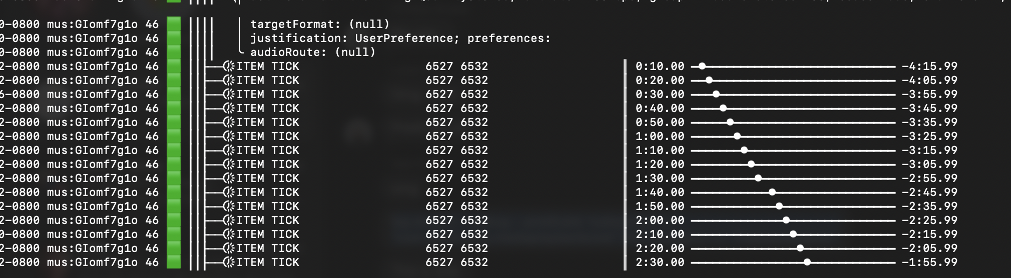 followed by a debug log that shows: