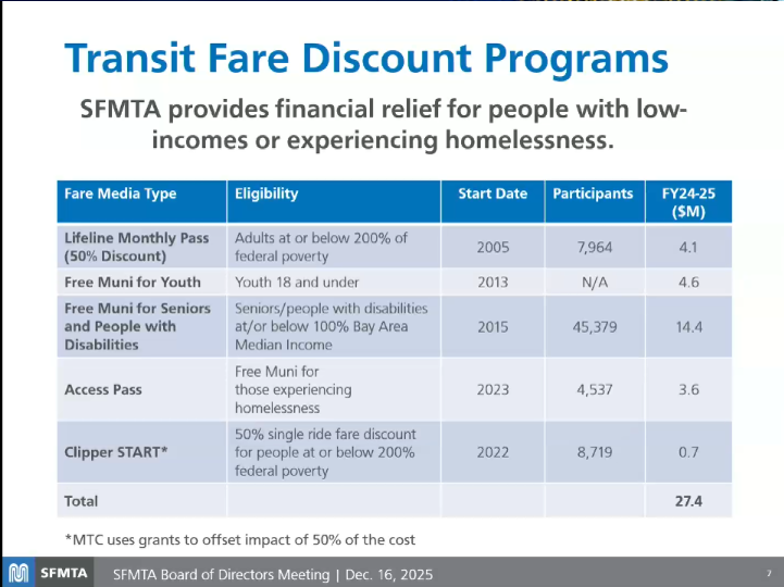 "But as you can see, the programs do come at a cost... we estimate about $27.4m a year goes to the administrative costs and also the projected fare revenue reduction."