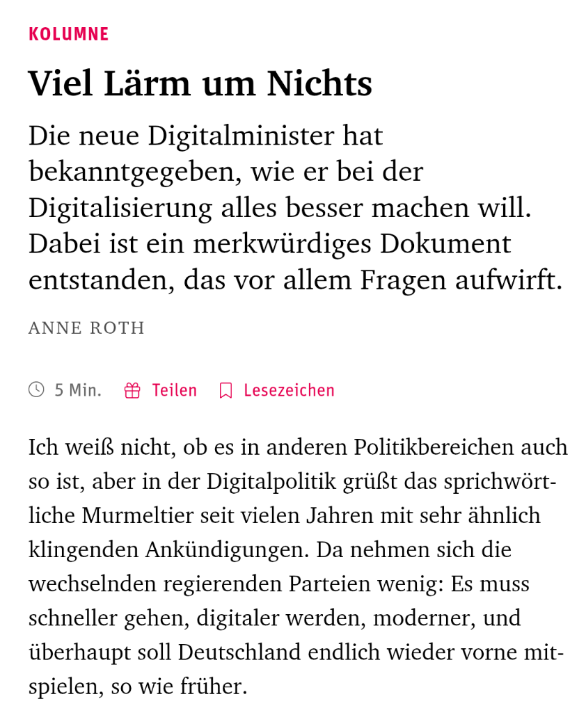 Mit @… Digital-Abo könnt Ihr jetzt meine neue Kolumne über einen seltsamen Text des Digitalministeriums lesen: