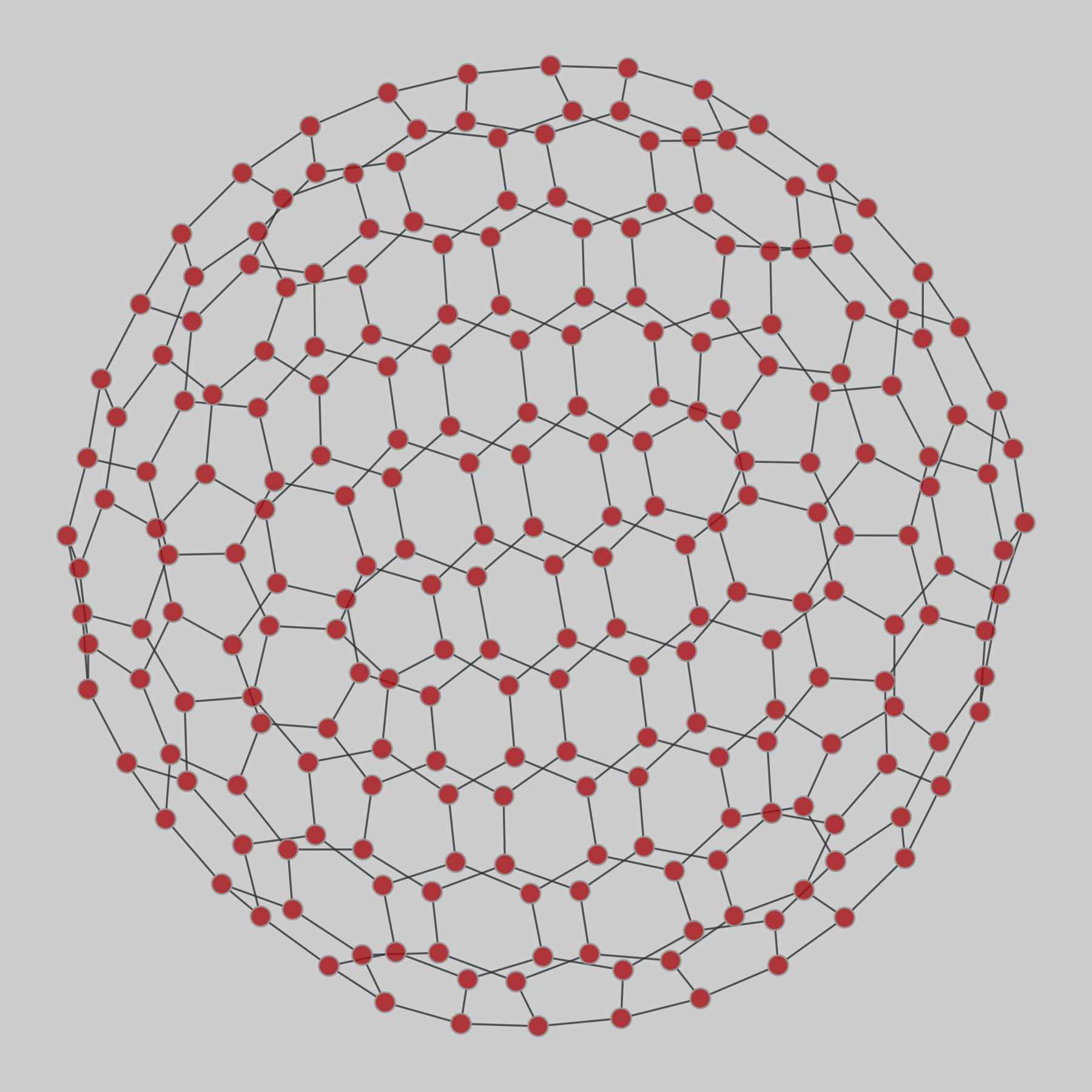 Fifteen networks of carbon atoms and the atomic bonds that connect them within molecules of fullerenes, from 60 atoms up to 6000 atoms. A bond is defined to exist whenever the distance of two atoms is less than 1.5 angstrom.