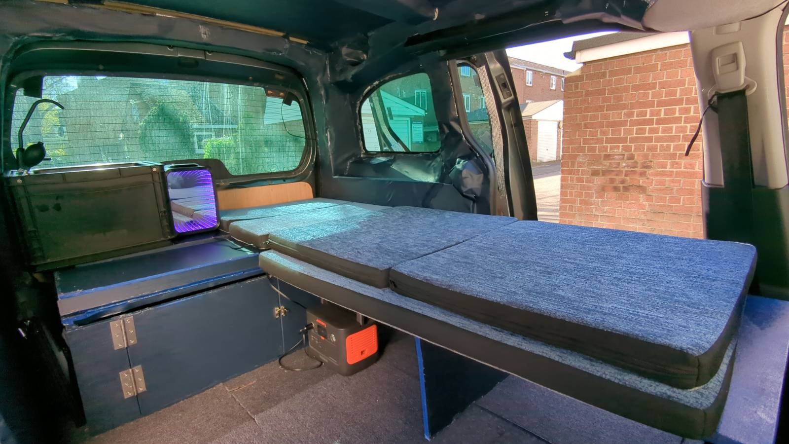 But we do get the configuration it'd mostly be in during a camp. Single bed out, sink and fridge available, batteries under the bed.
