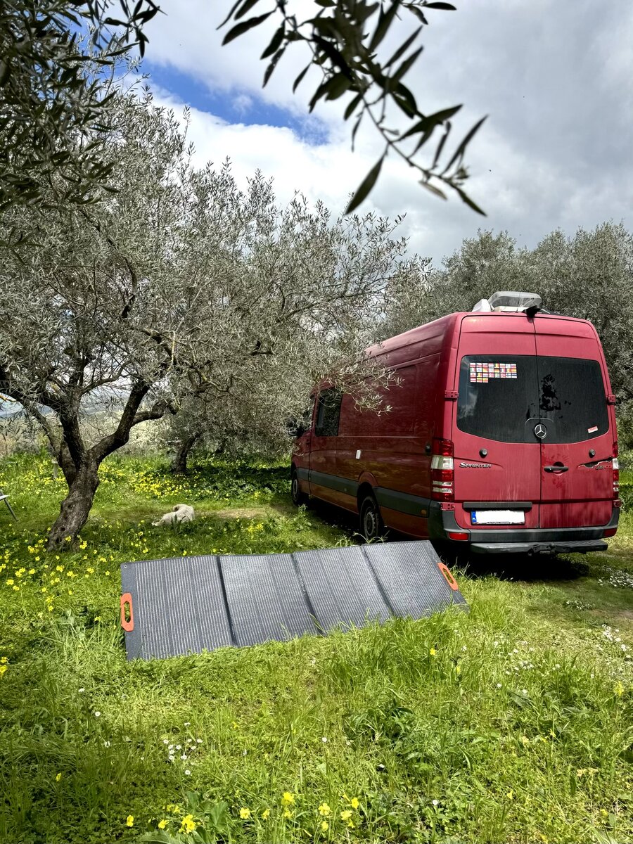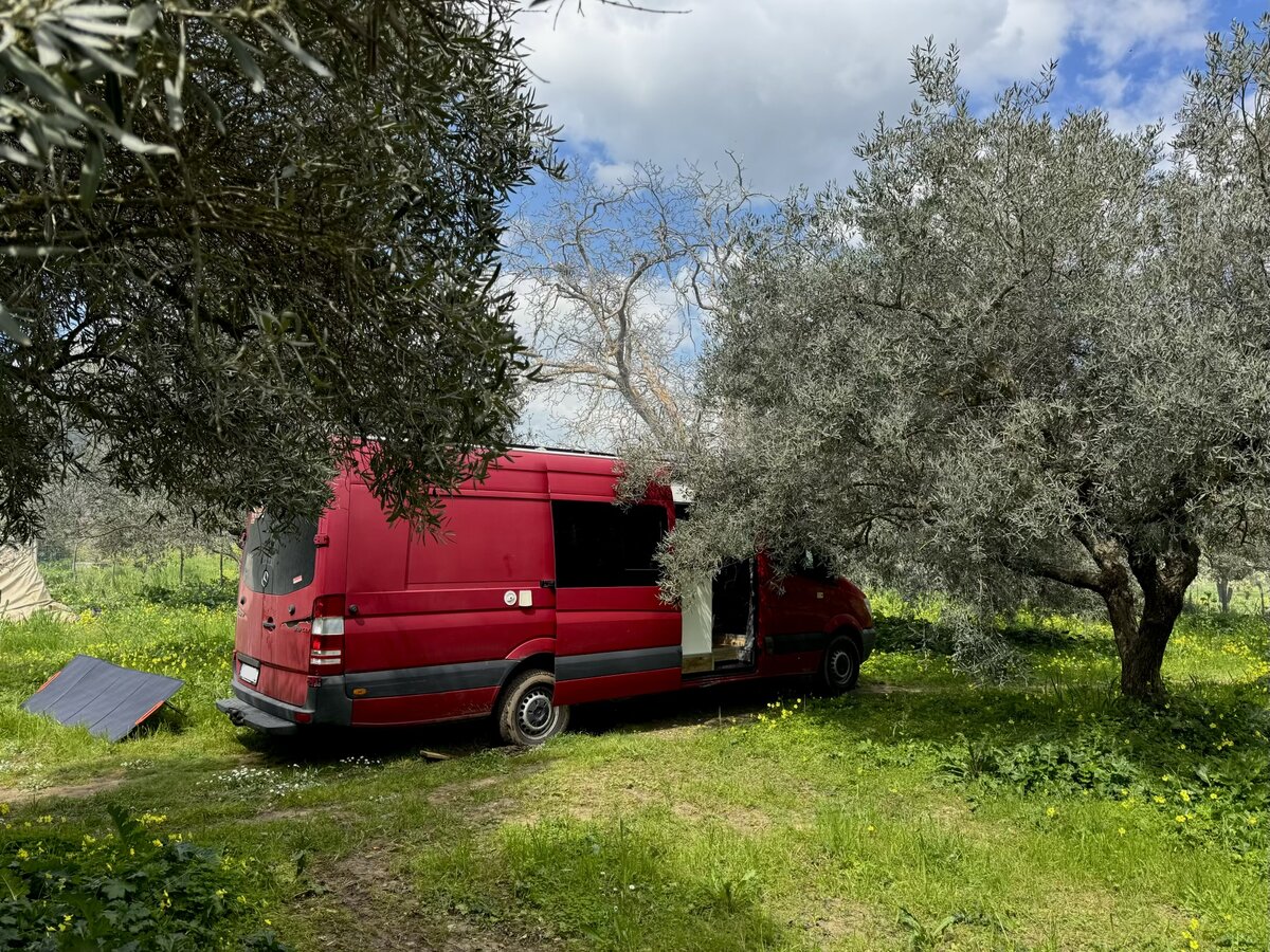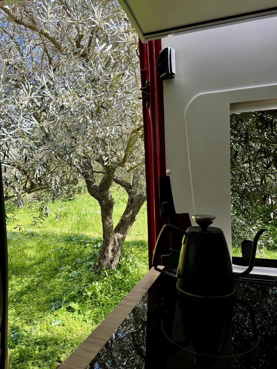 W takim miejscu utknąć - to nie żal :D już tak zostaniemy aż podłoże wyschnie - z drzewem oliwnym wchodzącym nam przez okno, otoczeni pieskami i wspanialą "głośną" ciszą.