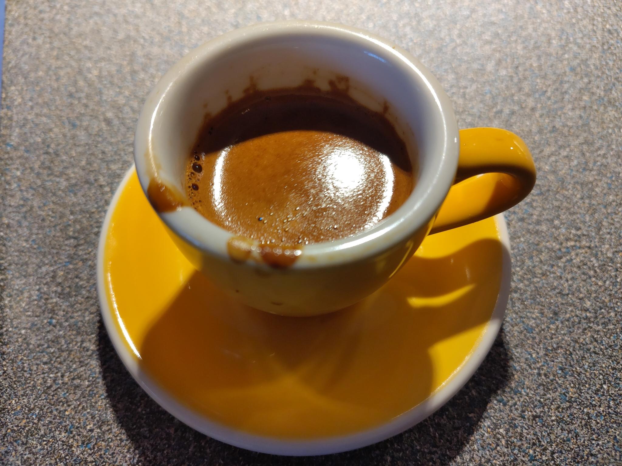Vandaag twee dubbele erspressi. Ze werden de afgelopen weken staads beter, maar in meen nu het maximum te hebben bereikt. Hoogstens nog met betere koffie, vers gebrande bonen en wat dies meer zij. Maar totdat mijn huidige bonen op zijn ga ik daar niet mee experimenteren, en misschien we nooit.