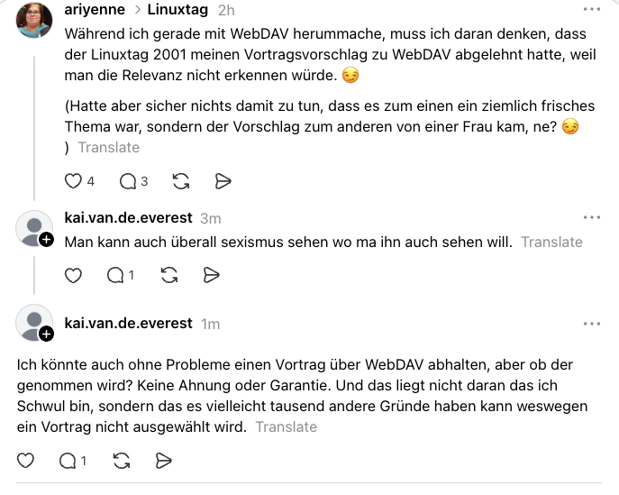 Während ich gerade mit WebDAV herummache, muss ich daran denken, dass der Linuxtag 2001 meinen Vortragsvorschlag zu WebDAV abgelehnt hatte, weil man die Relevanz nicht erkennen würde. 😏