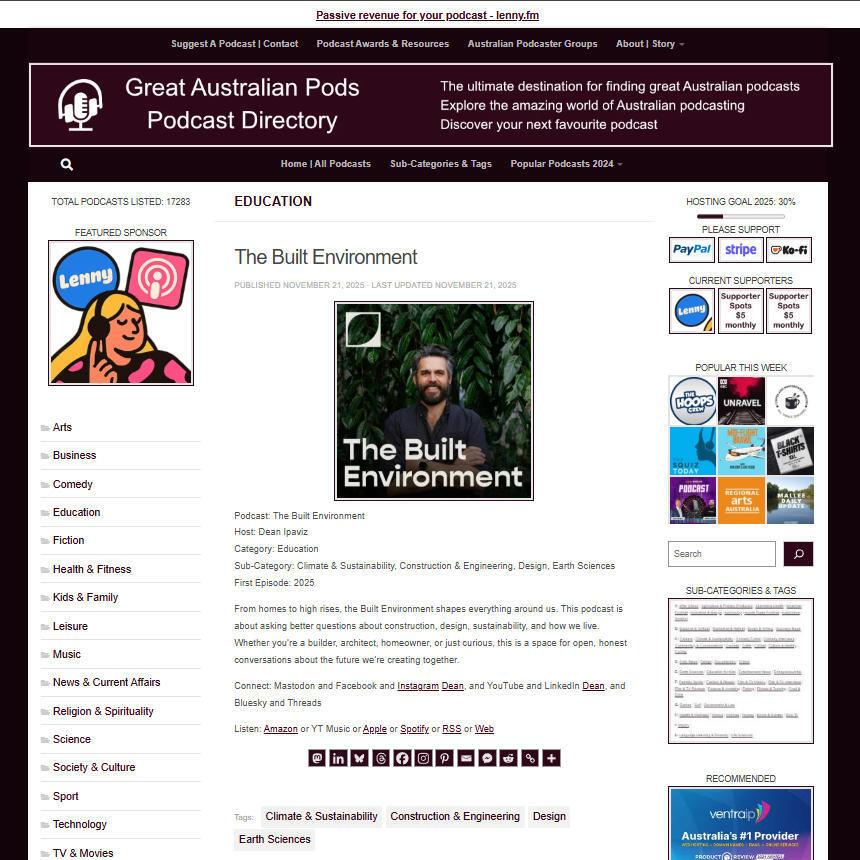 Great Australian Pods Podcast Directory: https://www.greataustralianpods.com/the-built-environment/