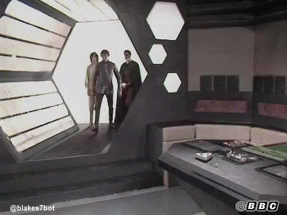 [Avon exits. Blake, Vila and Gan materialize. Vargas materializes in another teleport section.]