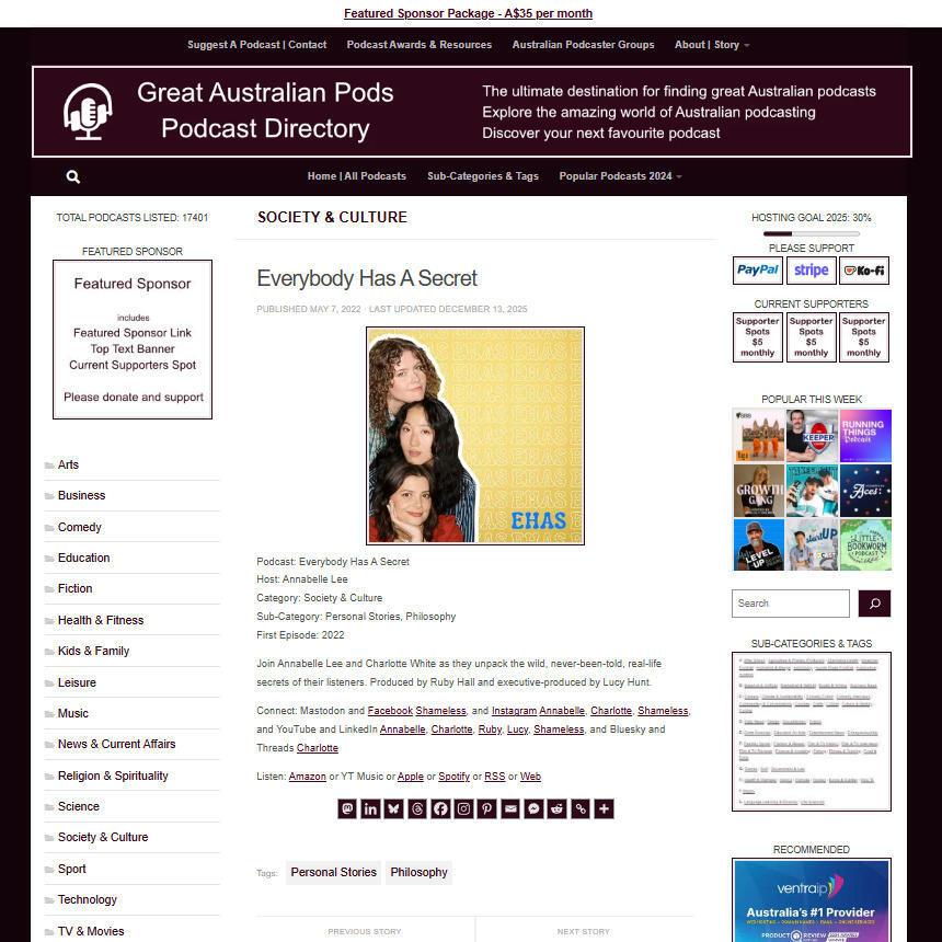 Great Australian Pods Podcast Directory: https://www.greataustralianpods.com/everybody-has-a-secret/