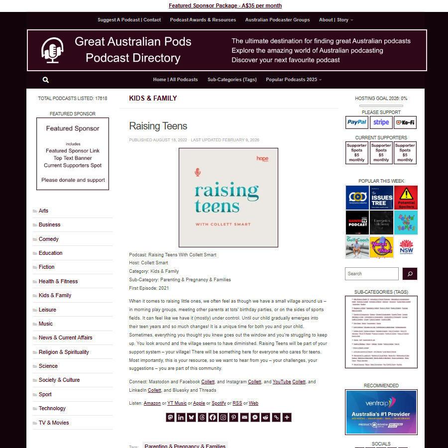 Great Australian Pods Podcast Directory: https://www.greataustralianpods.com/raising-teens/