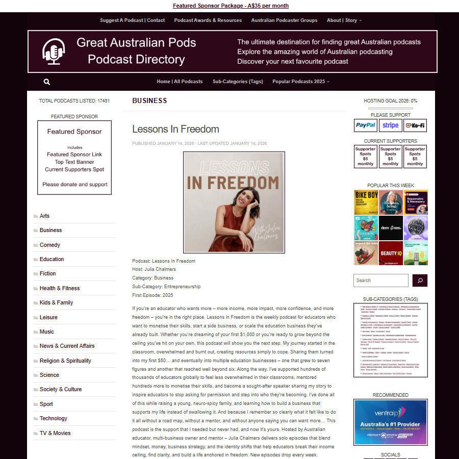 Great Australian Pods Podcast Directory: https://www.greataustralianpods.com/lessons-in-freedom/ …
