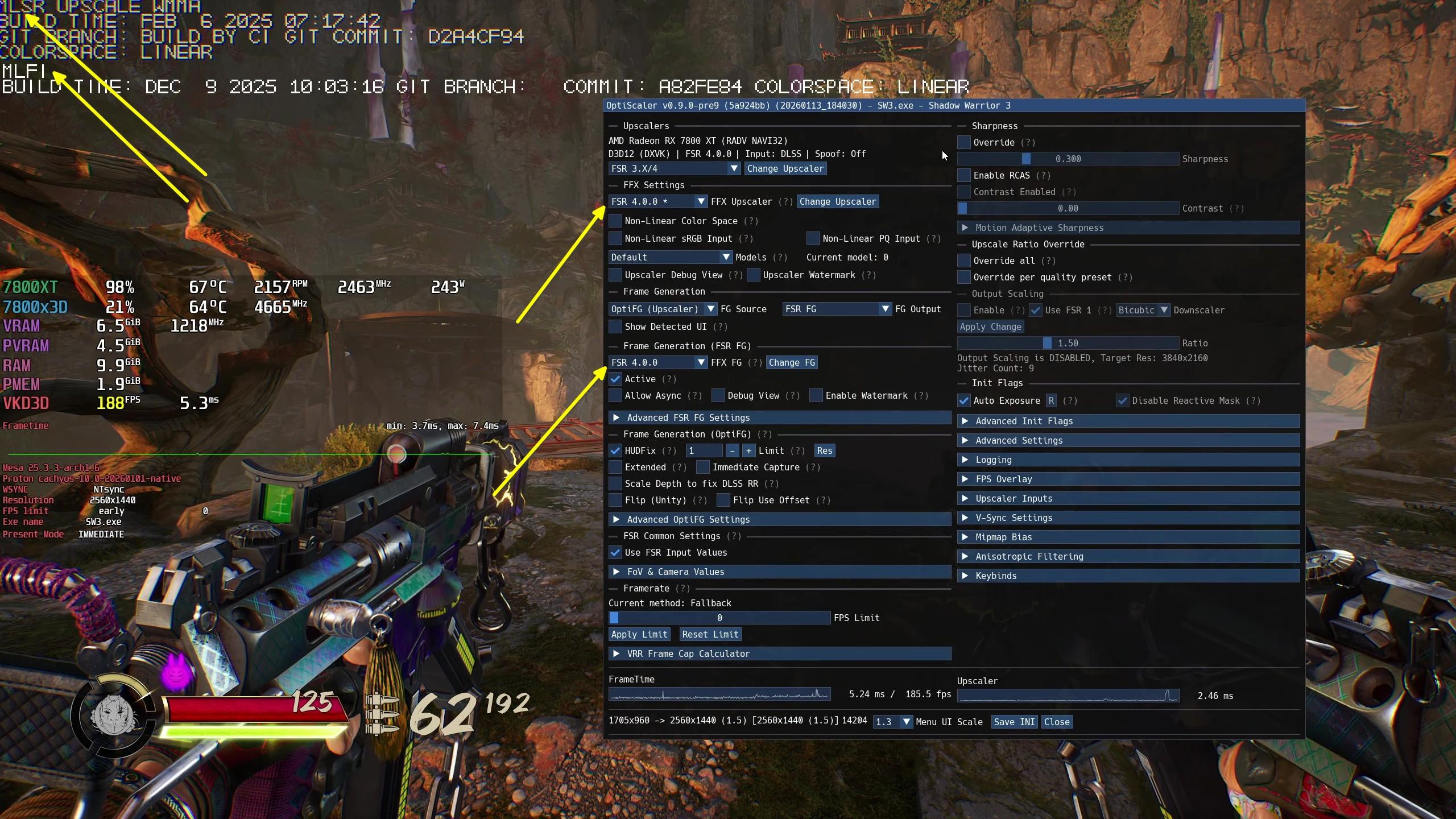 Got FSR 4.0.3 MLFG working on Linux with FSR 4.0.0 FP8 emulation in Shadow Warrior 3, too! 🥰