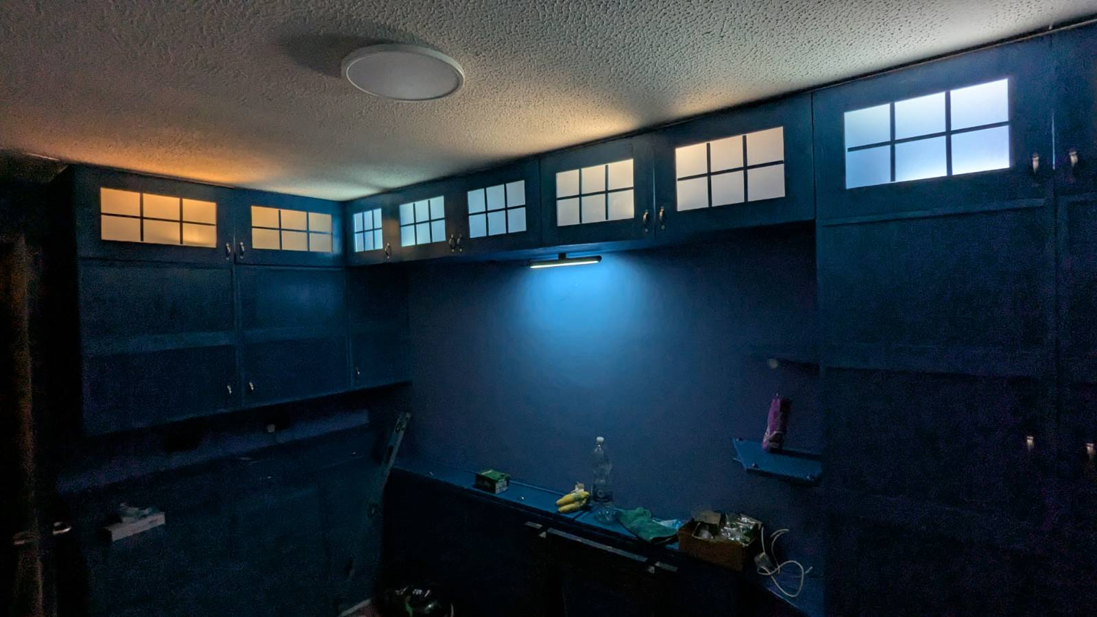 Not the final lights but ones with batteries I have lying around. They'll have lights chasing up and down the length of the windows and changing colour and warping when it's done next year.