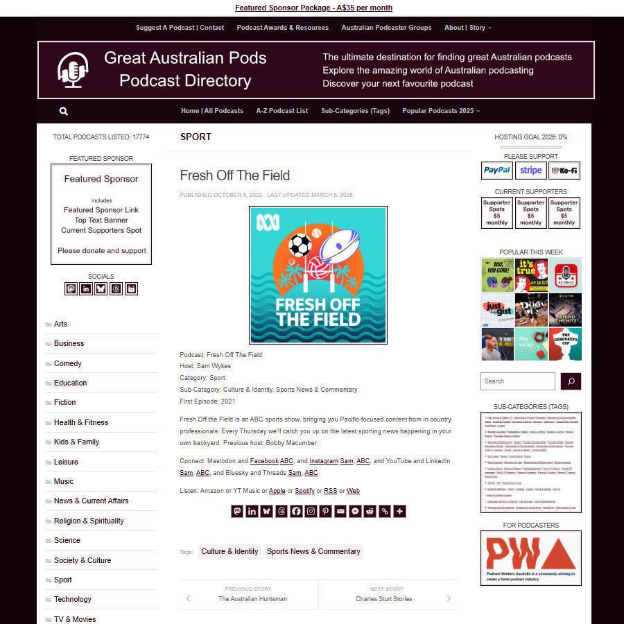 Great Australian Pods Podcast Directory: https://www.greataustralianpods.com/fresh-off-the-field/