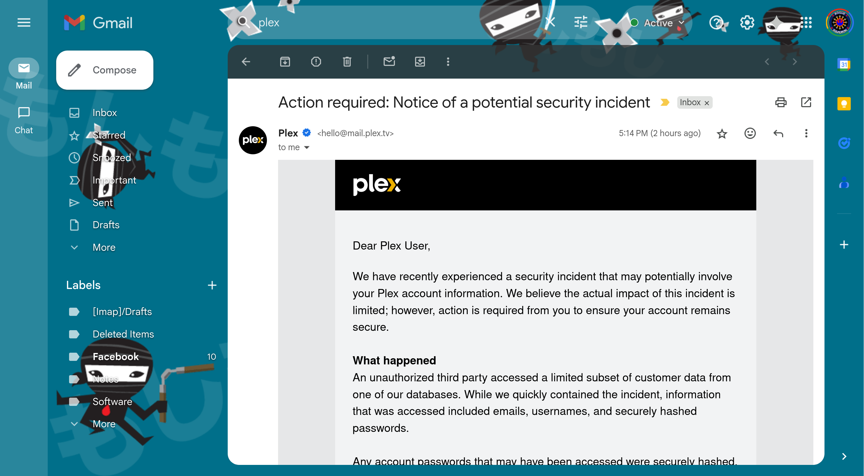 Yay, seems like #Plex has experience a slight case of security breach. Time to change the password (https://plex.tv/reset) and try to figure out why I haven't turned the server off at this point.