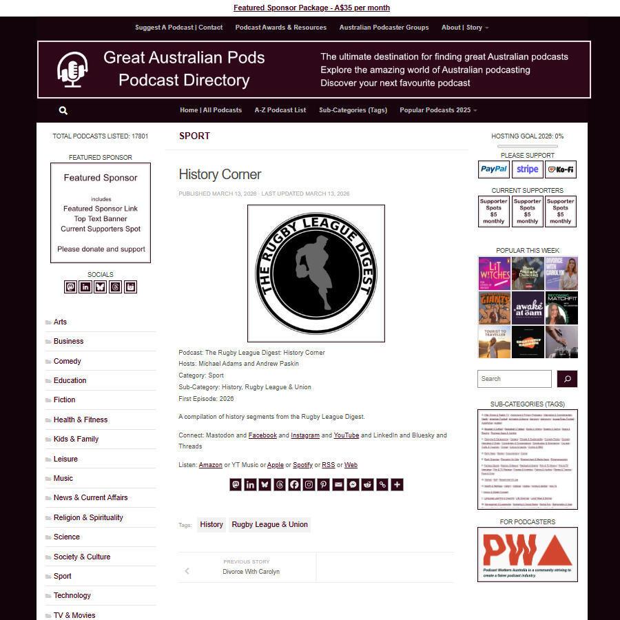 Great Australian Pods Podcast Directory: https://www.greataustralianpods.com/the-rugby-league-digest-history-corner/
