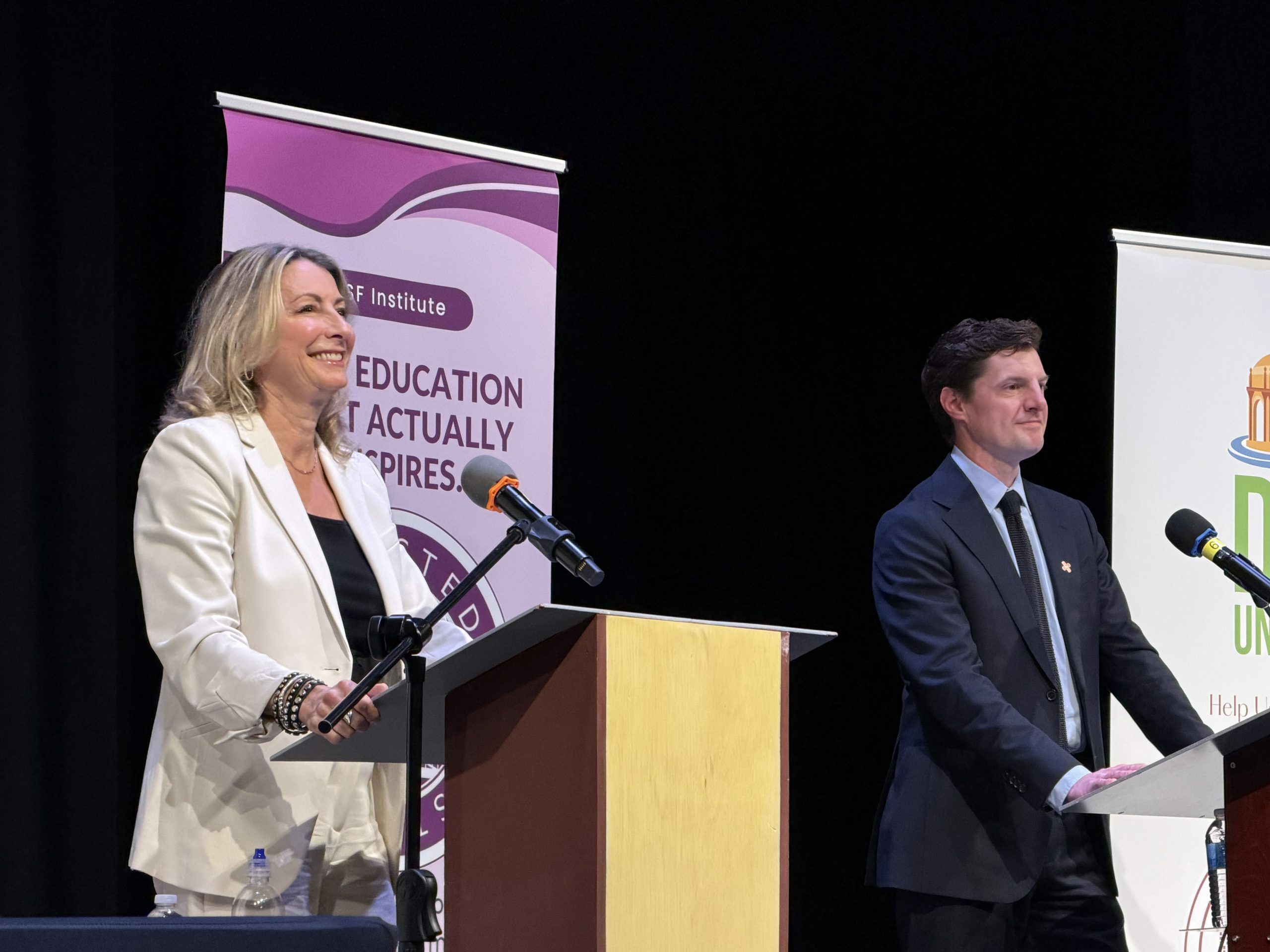 "Both candidates agreed that Market Street should be reopened to cars (a few people booed, then some cheered). They also both agreed that new housing developments should include more parking."