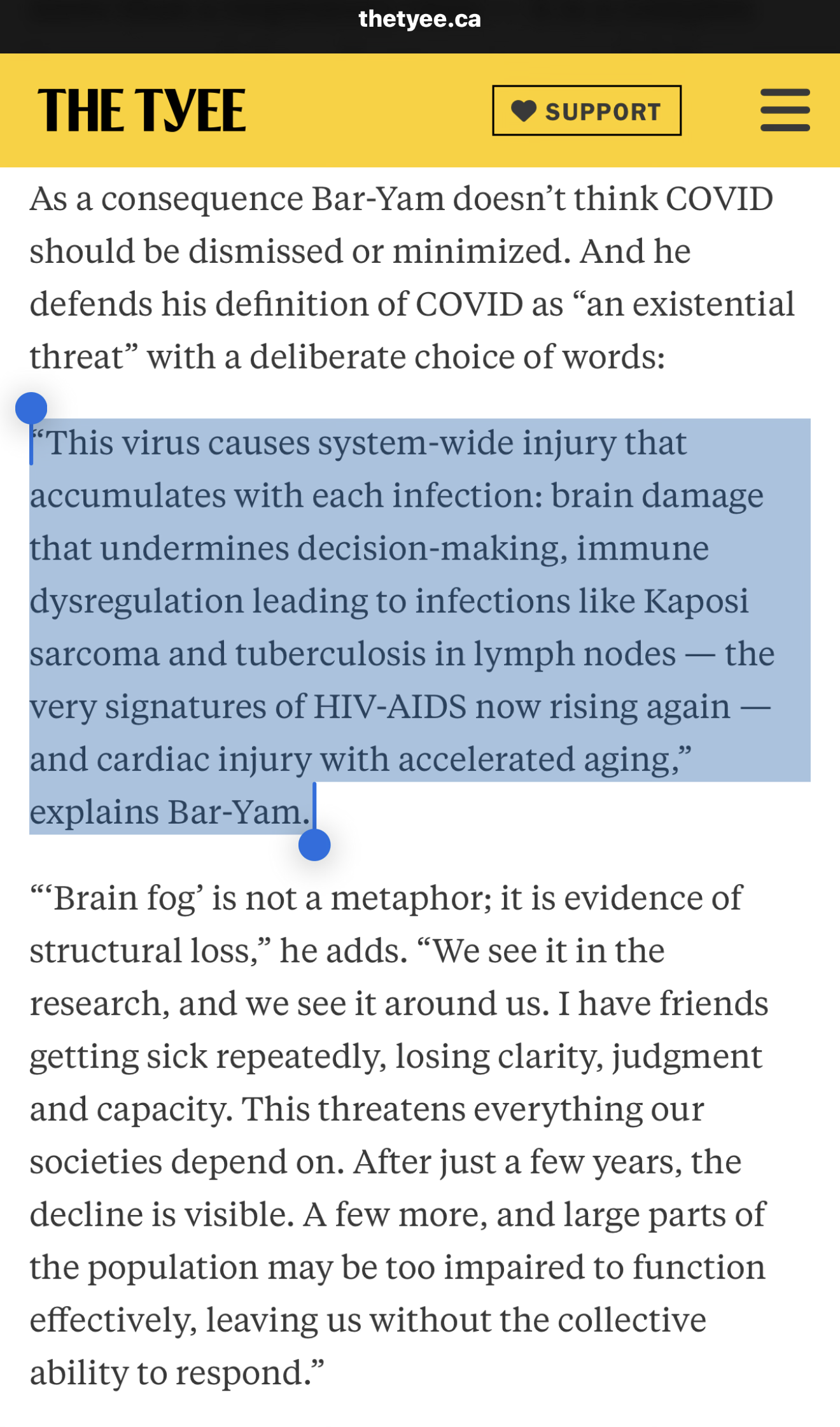 “This virus causes system-wide injury that accumulates with each infection: brain damage that undermines decision-making, immune dysregulation leading to infections like Kaposi sarcoma and tuberculosis in lymph nodes — the very signatures of HIV-AIDS now rising again — and cardiac injury with accelerated aging,” explains Bar-Yam.