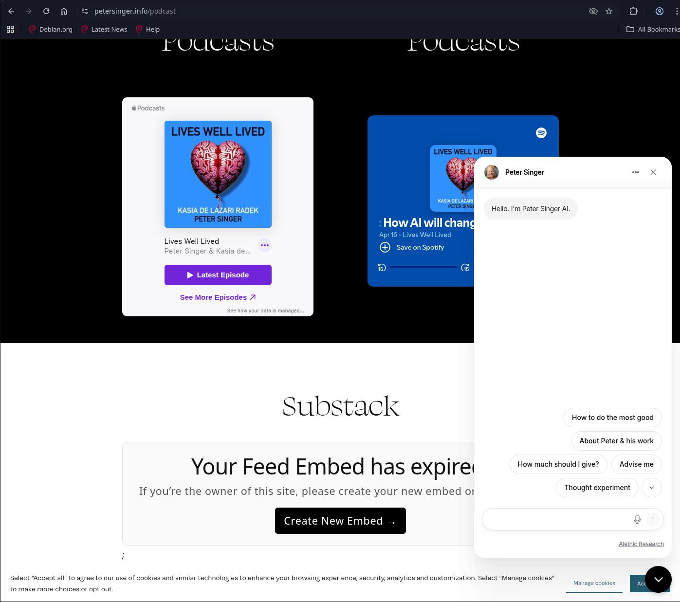 It has a embed for a substack.