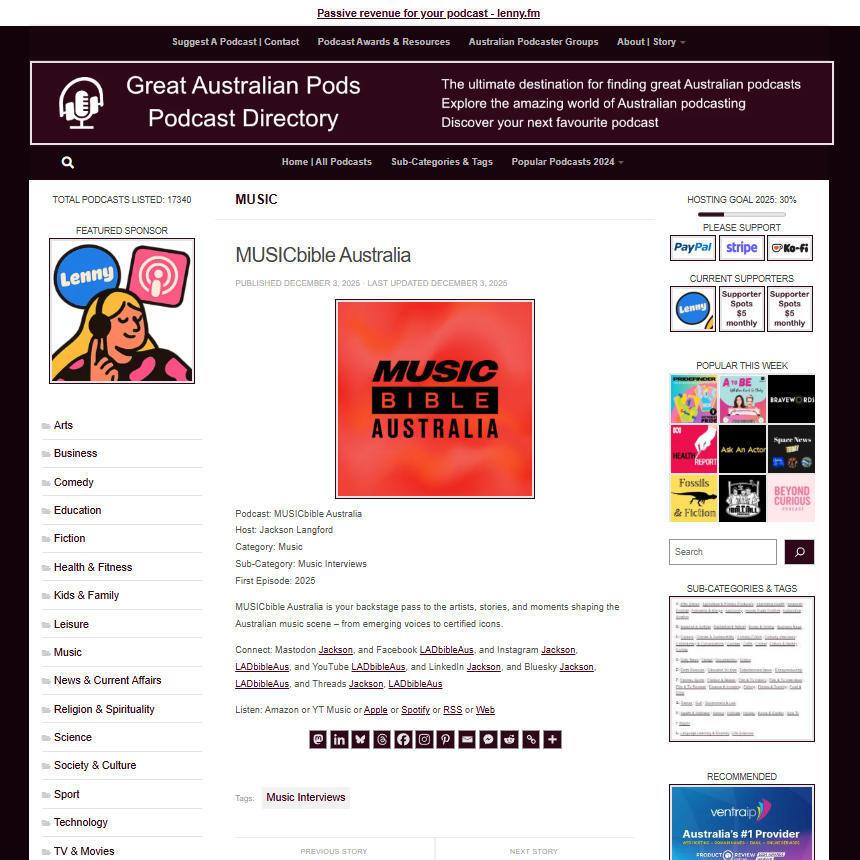 Great Australian Pods Podcast Directory: https://www.greataustralianpods.com/musicbible-australia/