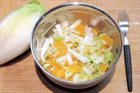🌿 Dieser einfache #Chicorée-Salat kombiniert die leichte Bitternote des Chicorées mit der süßen Frische von #Mandarinen. Die Zubereitung ist kinderleicht und geht sc…