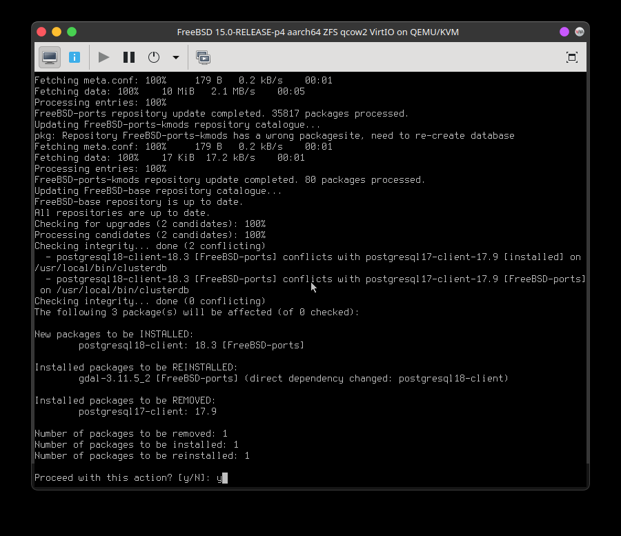Unfortunately: kde is currently not packaged for FreeBSD:15:latest on ARM64, so a change to quarterly was required.
