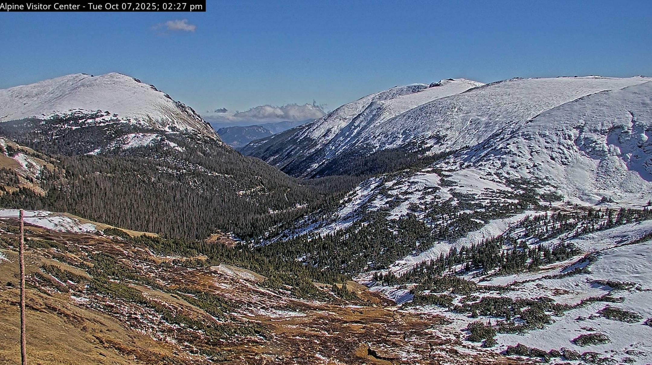 Here’s the view from the official web cam at the #AlpineVisitorCenter in #RockyMountainNationalPark on Tuesday, October 7, 2025