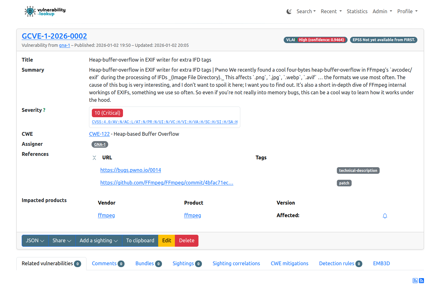 I particularly enjoyed this one. By the way, in Vulnerability Lookup we also have a nice display of the actual credits: finder, coordinator, and so on.