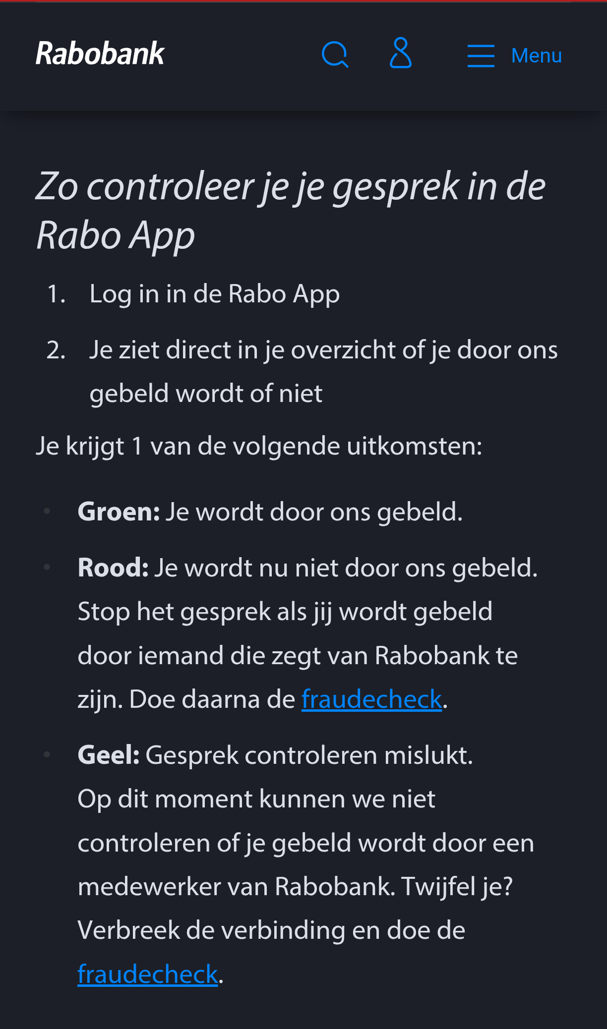 Controleer je gesprek - Rabobank