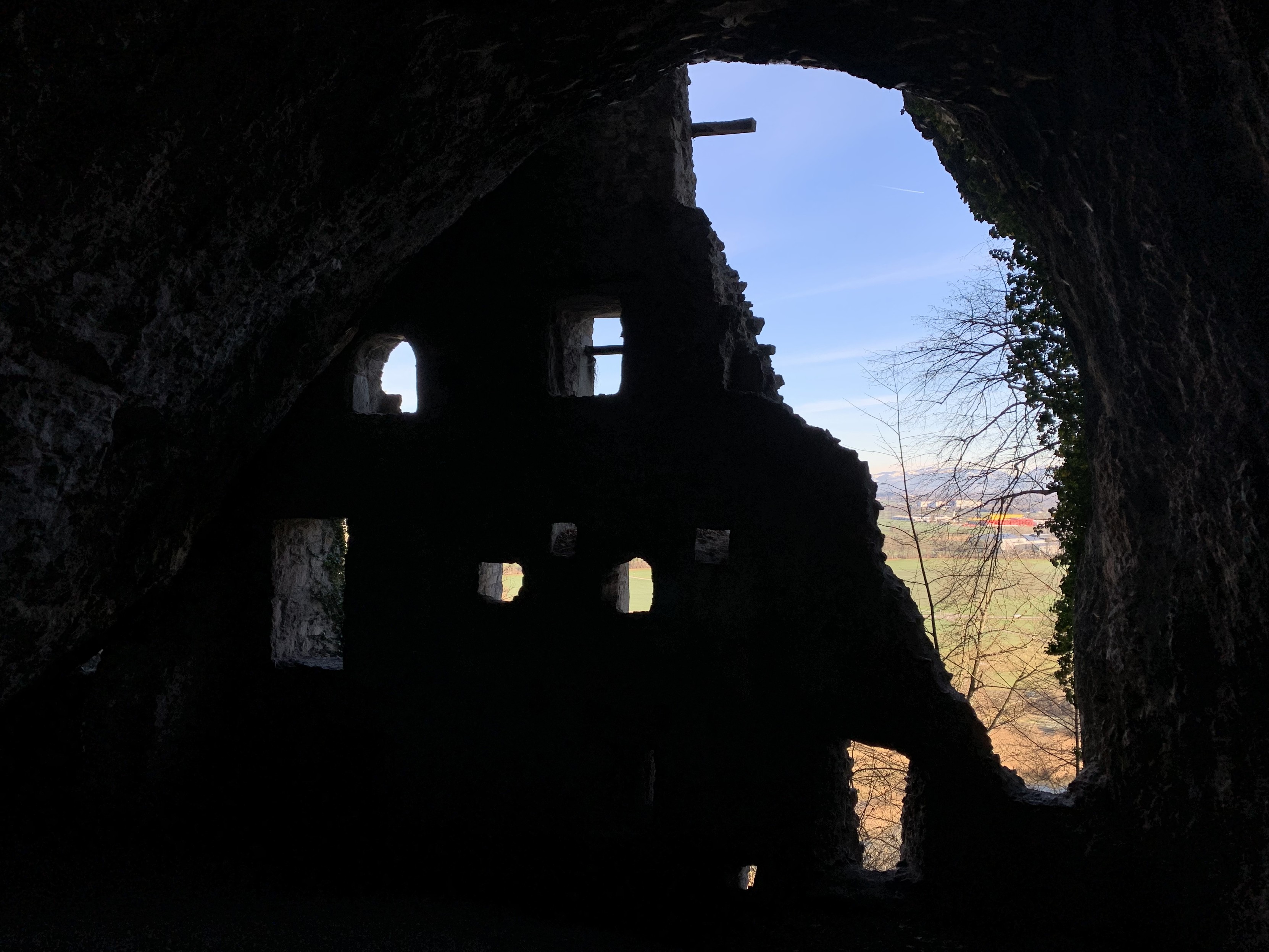 St. Galler Rheintal: Höchste Kruzifix- und Haussegnungsdichte (nicht mal der Beobachtungssteg am Naturschutzgebiet muss sich fürchten) diesseits des Ribeligrabens. Die erst im 19. Jhdt „restaurierte“ Höhlenburg braucht keine, denn dort lebt wohl der Druide, der nicht lange nach Misteln zu suchen braucht.