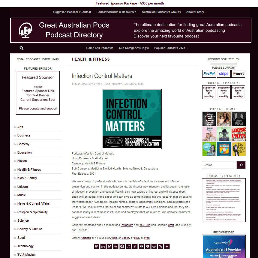 Great Australian Pods Podcast Directory: https://www.greataustralianpods.com/infection-control-matters/