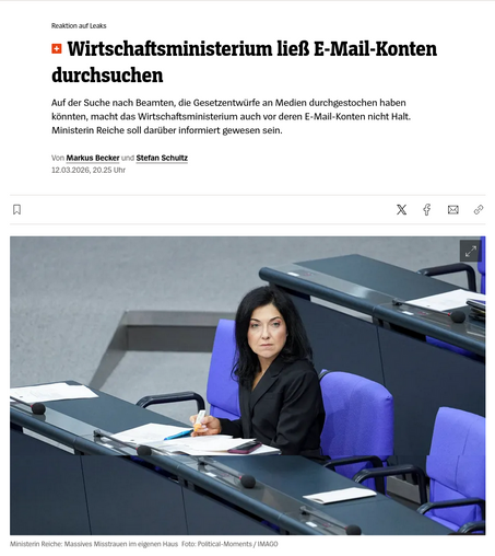 #Reiche scheint von den Leaks aus ihrem Ministerium genervt zu sein und lässt mal eben einige ihren Beamten überwachen bzw. "E-Mail-Konten durchsuchen".