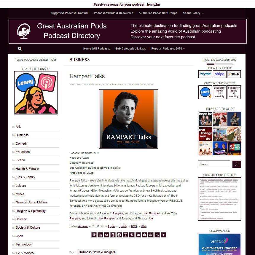 Great Australian Pods Podcast Directory: https://www.greataustralianpods.com/rampart-talks/