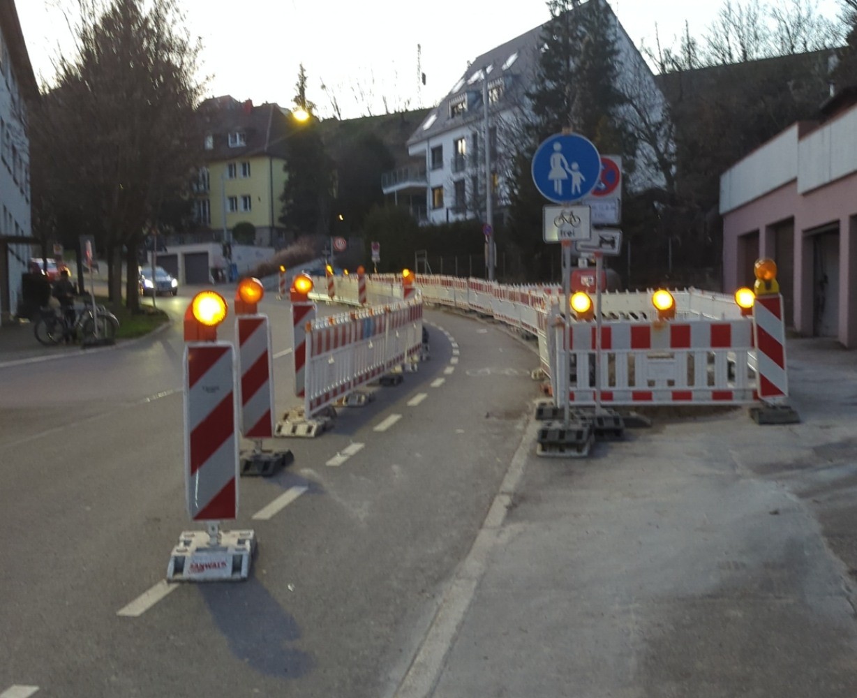 mal wieder eine Baustelle und schon wieder sind die gutbezahlten und angeblich ausgebildeten(!) Fachleute der Stadtverwaltung komplett damit überfordert, zwei Schilder halbwegs korrekt aufzustellen.
