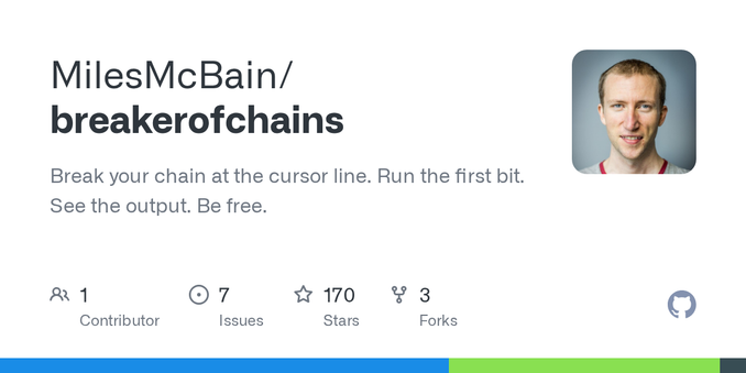 Easier debugging of piped analyses in R: https://github.com/MilesMcBain/breakerofchains by @…