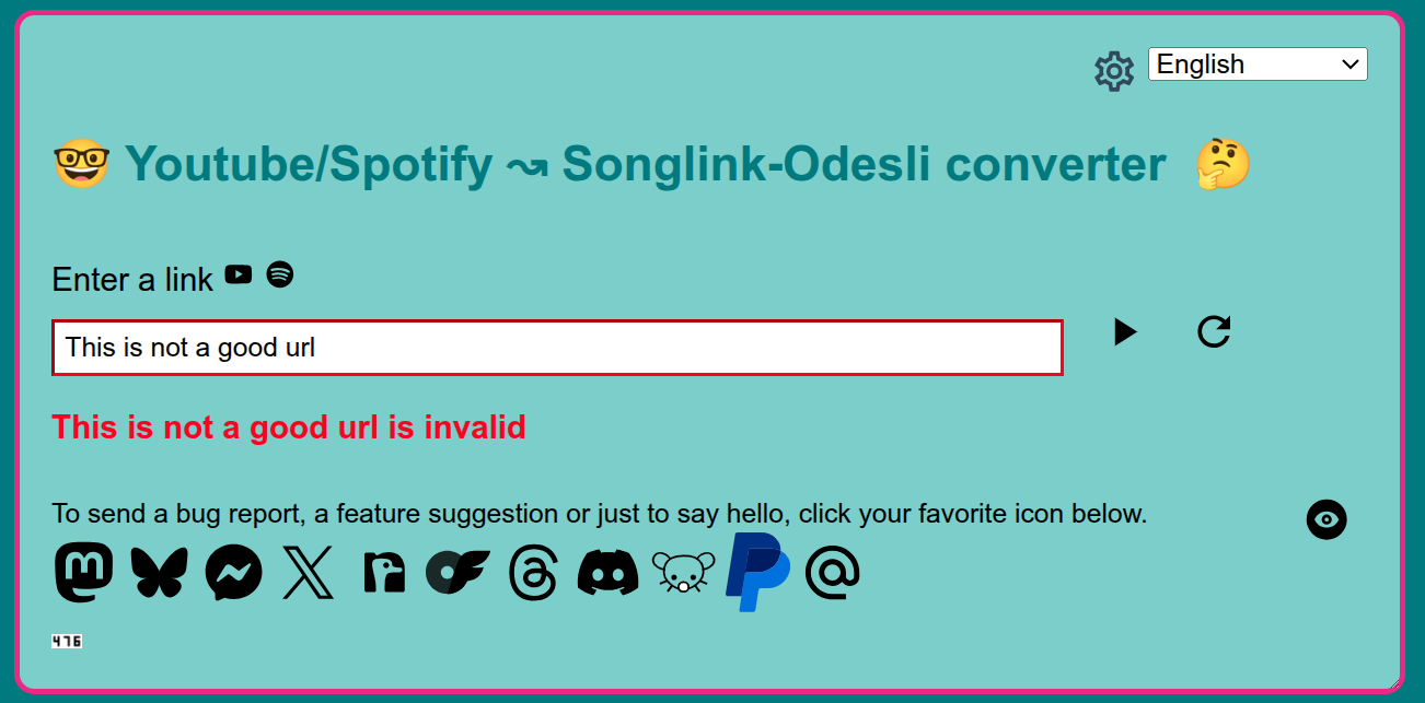 When given an Invalid URL, the page now show a error message instead of just hanging there like an idiot.