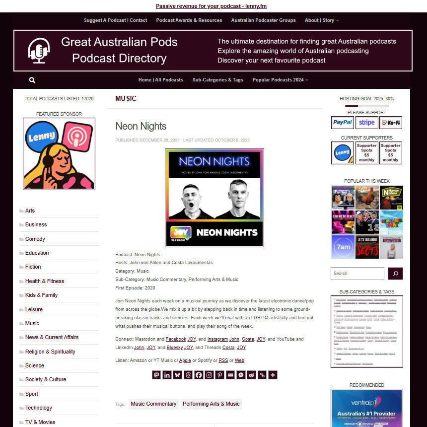 Great Australian Pods Podcast Directory: https://www.greataustralianpods.com/neon-nights/