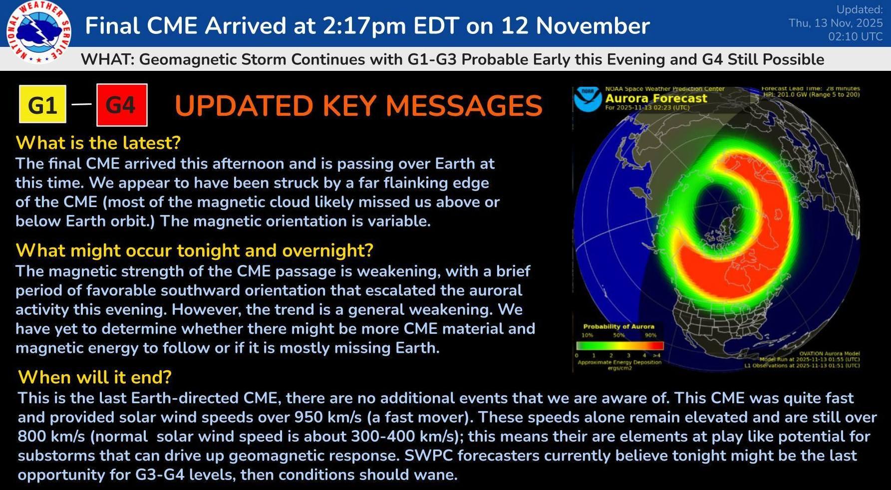 In which NOAA more or less calls an end to the Earth/Sun excitement: #aurora night for the world will probably not be followed immediately by another great one. (This may be one of the few 'laws' of space weather predicting with a greater than 50% chance of being true. Been through that so many times by now I was actually not expecting much tonight ... d'oh.)