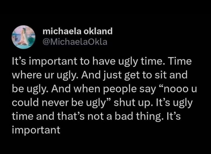 Check your privilege. Some of us are ugly 24/7.