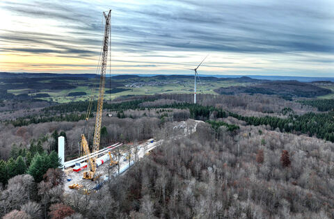 (€) Im Windpark #Sonnenbühl steht das erste #Windrad bereits, der zweite Turm wird aktuell errichtet.