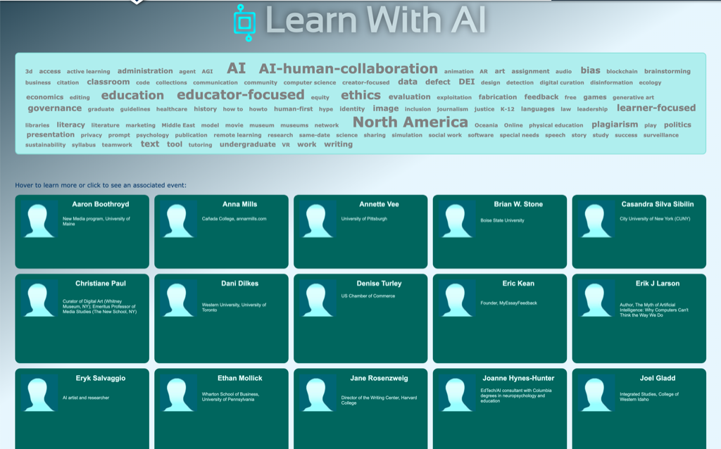 Did you know that the Learning With AI toolkit has a speakers bureau for AI and education? Filter for expertise like "agents administration" or "data bias," then click on presenters to watch recordings that demonstrate their presentation styles.