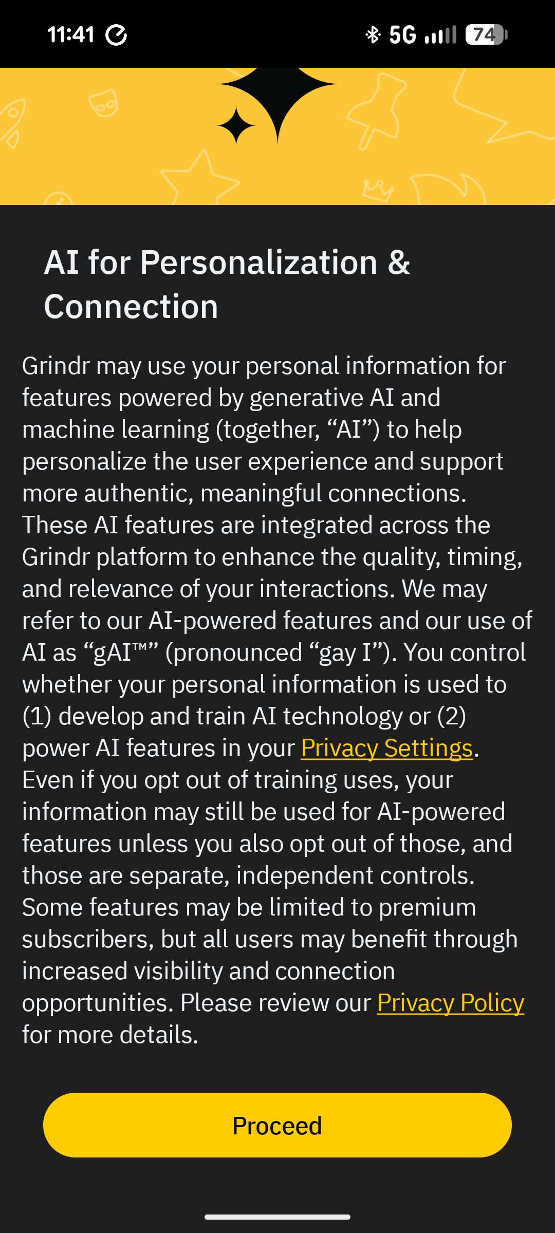 Grindr introduces "gay I", some privacy invading thing you have to opt out of. This is the same company that once sold their users HIV status to advertisers.