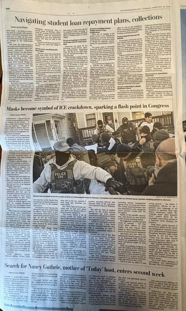 The Washington Post's February 10 print edition featured two full pages of AP stories in the A section and a total of eight stories from the wire service (John Kelly/@johnkelly)