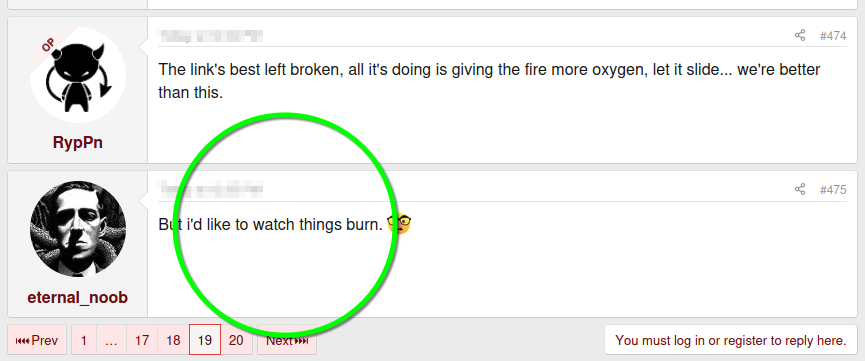 The flames certainly entertained that one person. Moderators might have been less amused; it …